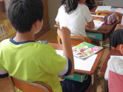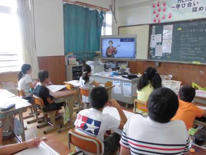 音楽で「アイネ クライネ ナハトムジーク 第1楽章」という弦楽器の曲を鑑賞の活動で聴きました。バイオリンとビオラ,チェロ,コントラバスの4つの楽器がどのように重なり合い,響いているのか,CDだけでなく楽器を演奏しているDVDを見ながら,一つ一つの音の響きとその重なりを確かめていきました。中には指揮のように曲の高低や強弱に合わせて腕を大きく動かしている子もいました。めあてに向けて,一生懸命学習に臨んでいました。