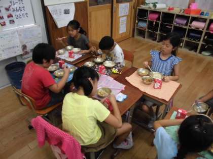 しかし,会話が楽しすぎて,なかなか時間内に食べ終われない子もいました。