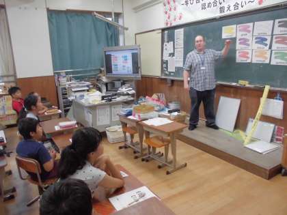 はじめにALTの夏休みの思い出について写真を交えながらクイズ形式であり,子どもたちはほかの国の文化に目を向けることで様々な発見をすることができました。