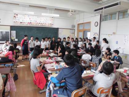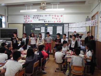 5年生全員で給食中の6年生の教室へ。大きな声でエールを送りました。また,メンバーに選ばれている6年生もそれに元気よく応えてくれました。