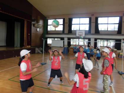 5年生は新しい単元としてソフトバレーボールの学習を始めました。ルールやゲームの進め方を知り,サーブやレシーブなどの練習をしました。