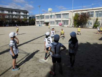 3年生は体育で「ハンドベース」の学習を行っています。今日は,5回目の授業でした。