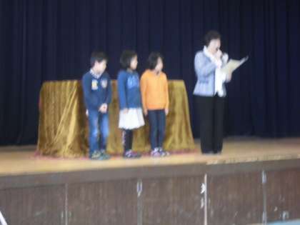 そして,お待ちかね担任発表。新しい担任の先生が呼ばれ,最後に西大路小学校に新しく加わる3名の紹介がありました。