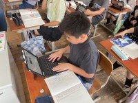 学校には,たくさんの文字があふれています。特に職員室前には,ショコラちゃんマシュマロちゃんの飼い方や,ポスターなど,文字がたくさん。みんな夢中になって,字を探してメモをしていました。