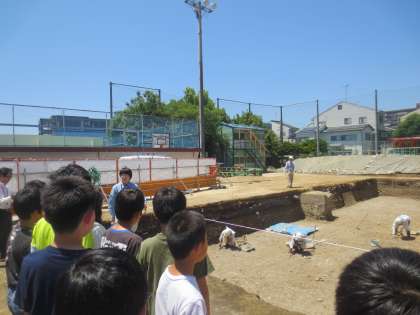 歴史を勉強している6年生。発掘調査を見学させてもらうことができました!