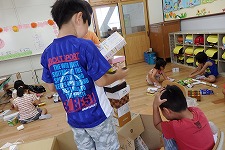 図工の授業で,箱を使った学習をしました。1週間前から,持ってきた箱が使いたくてうずうずしていた子どもたち。授業が始まる前から,目を輝かせて準備をしていました。