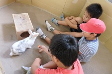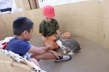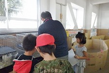じいっと観察していると,前の触れ合い体験では見られなかった毛づくろいの様子が見られたり,手から餌を食べる様子が見られたりもします。今まで見たことがないしぐさを見せるたび「わぁ!見て見て!」と嬉しそうに笑顔を見せる子どもたちです。