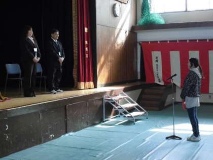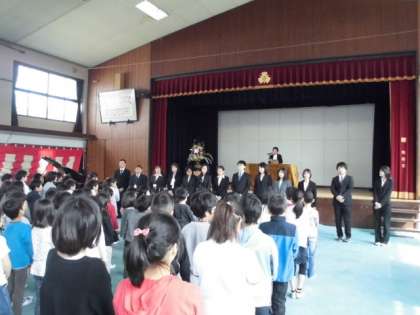 着任式で2名の教職員を迎えました。その後始業式をしました。
