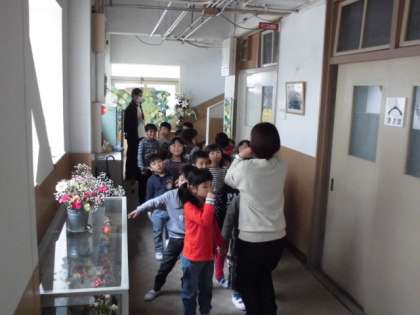 「しずかにするおやくそく」をしっかり守りながら校舎をたんけんしています。