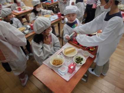 給食当番の仕方など2年生が教えに来てくれました。