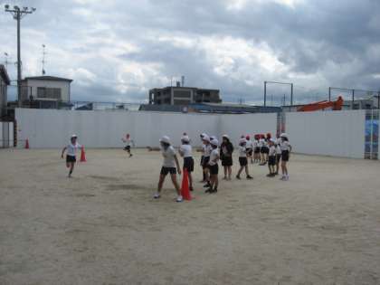 5年生は体育の時間にむげんリレーをしていました。