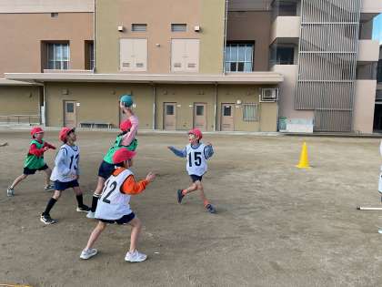 体育ではパスゲームの学習をしています。チームで協力してパスを回しながらゴールを目指します。どうすれば、勝てるのか作戦を立てているチームもありました。寒い中でしたがみんな元気に体育をしている姿はすばらしいです。