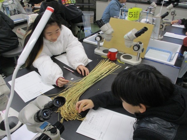 6年生は、青少年科学センターへ行って学習しました。今回は、「イネのひみつ」という内容で、自分たちが普段給食で食べているご飯(白米)は、イネからどのように変化しているのかや、イネという植物について学びました。たくさん実験や観察をすることができ、最初から最後まで進んで取り組む姿が見られました。休憩時間には、教室内にある生き物や標本を観察して楽しむ様子も見られました。