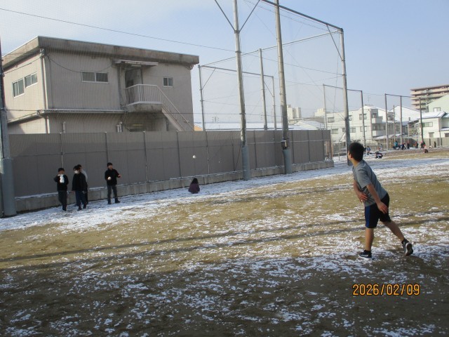 待ちに待った雪が校庭に積もりました。