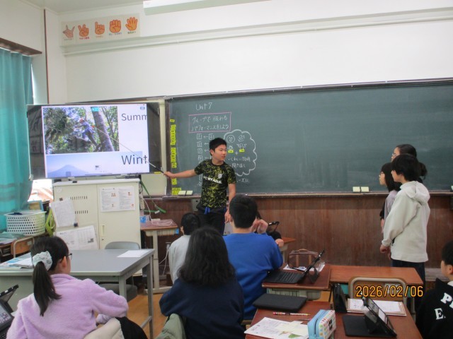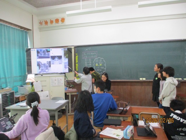 英語の学習で、グループで旅行会社をつくって、日本の名所ツアーを紹介する学習をしました。