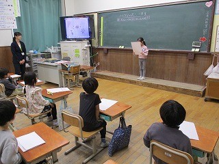 国語科「いいこといっぱい、一年生」の学習で、一年間をふり返って一番の思い出を作文に書きました。そして、参観日に自分の書いた作文を発表しました。たくさんの人の前で読むのは緊張したけれど、みんな自分の書いた文章を堂々と読むことができて素晴らしかったです。この一年の思い出や成長が伝わる参観になったのではないかと思います。お忙しいところ、たくさんのお家の方にご参観いただきありがとうございました。