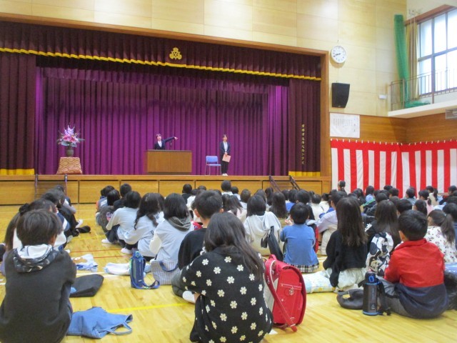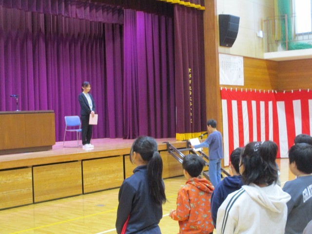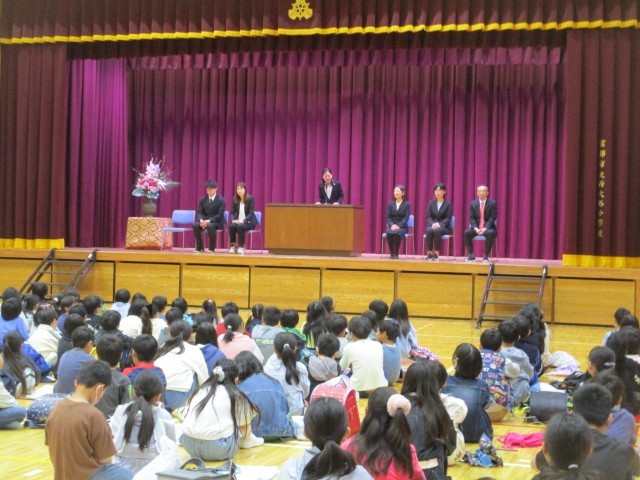 代表の6年生が、新しく来られた方々に西大路小学校のよさを伝えてくれました