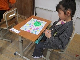 クレパスで丁寧に描いていました。