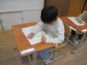 よい姿勢と正しい鉛筆の持ち方を意識して、