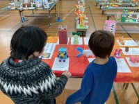 たいいくかんへ ずこうてんを みにいきました。じぶんのさくひんのよさや ともだち...