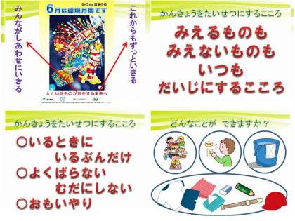 6月が環境月間ということで,「環境を大切にし,未来に向けて人といきものが共生する」ためのキーワードを示してくださいました。