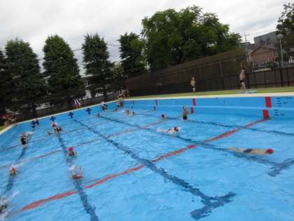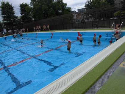 今年度は改修工事を終えたので,七三小にとってはまさに「プール開き」です。