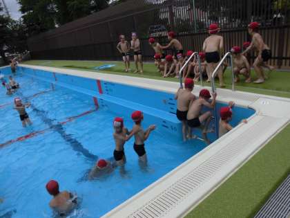 少しずつ気温も上がり始め,3時間目にはプールに入れる気温と水温になりました。