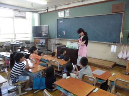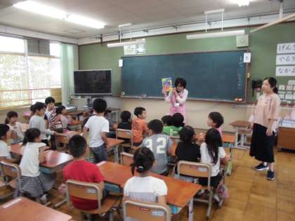 朝から1・2年の教室にて,図書ボランティアさんによる読み聞かせをしていただきました。