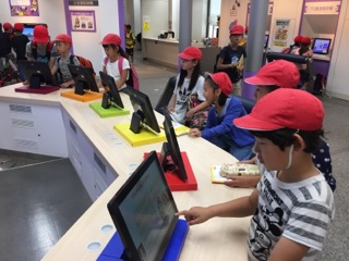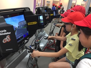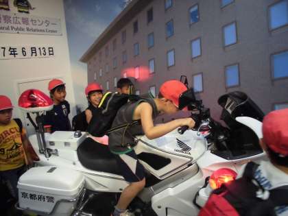 白バイも展示してあります。みんな,いろいろなブースを回って楽しんでいました。