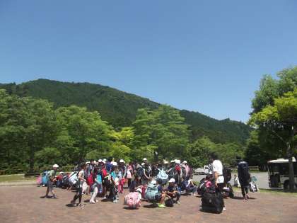 気持ちの良い山道を京都バスに揺られ,全員元気に花背山の家に到着しました。早朝よりのお弁当の準備,荷物の最終確認,そして笑顔の送り出し,保護者の皆様に心より感謝申し上げます。