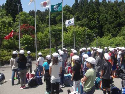 入所式では,山の家のスタッフの方から,「五感を働かせて,素晴らしい“非日常”を味わってください。」というメッセージをいただきました。
