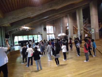 写真は,片付けがひと段落した後の「朝の集い」の様子です。