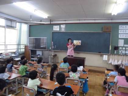 1・2年の教室では図書ボランティアの皆さんが,3年生以上の教室では教職員が読み聞かせです。