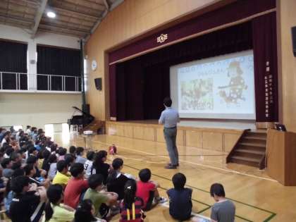 夏休み明けの9月5・6日には「夏休み自由研究展」も予定しています。七条第三小学校では,子どもたちに夏の自由研究に力を注いでほしいと願っています。そこで,校長先生から「研究の楽しさ」や「テーマの選び方・見つけ方」などについてのお話がありました。