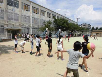 ただ,今日は本当に暑い日です。さすがに子どもたちも教室で過ごすのかな,と思いきや・・・。