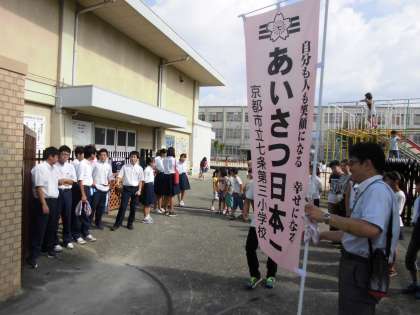 七条中学2年生によるあいさつ運動も4日目となりました。