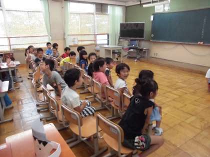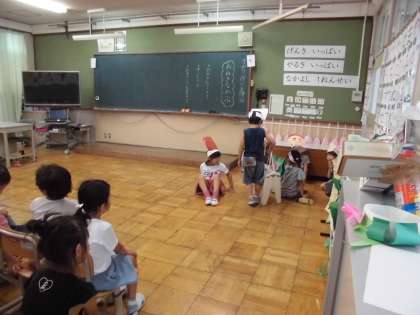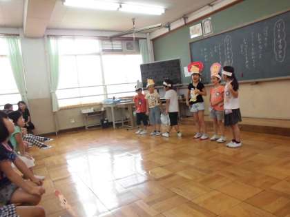 1年生の各教室では,「おおきなかぶ」のげきの発表会を行っています。