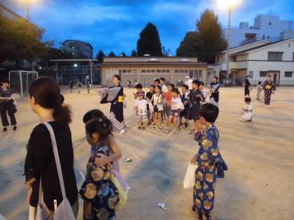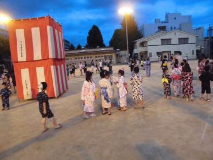 「うちわの手作りコーナー」でうちわを作り,それを持って「盆踊り」です。