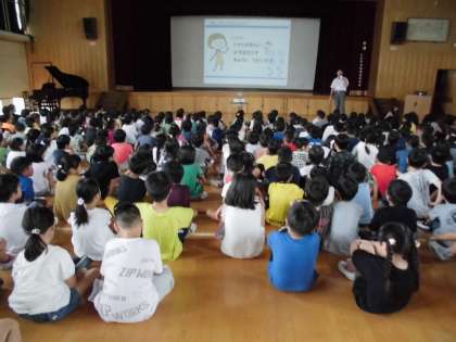 朝会での校長先生のお話は,いろいろな切り口でお話が始まります。