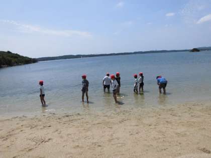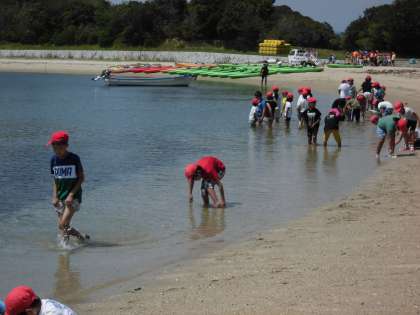 貝殻を探したり,砂で遊んだり,水に入ったり,・・・。
