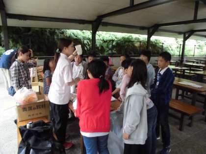 野外炊事場で蒸しパン作りをします。