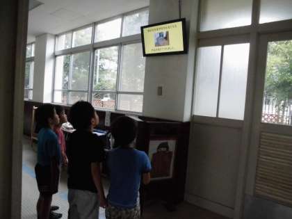 今は,「夏休み自由研究展の作品」や「4年生みさきの家の写真」,「5年生の感動体験発表の内容」などを中心に流しています。