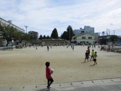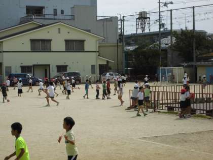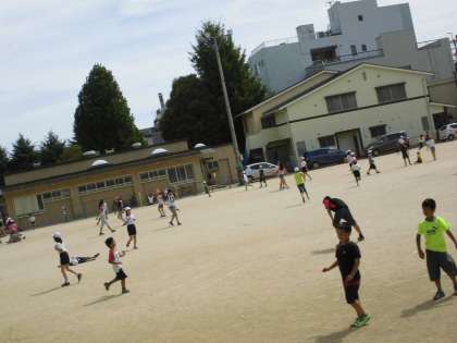 それほど広くない運動場ですが,たくさんの子が外に出ています。