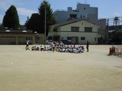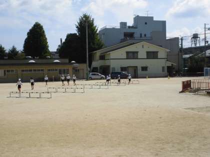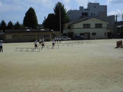 運動場では,5年生は「ハードル走」の練習,6年生は「100m走」をしていました。