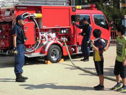 水の勢いは全然違いますが,どのように消火活動にあたるか,イメージできたはずです。