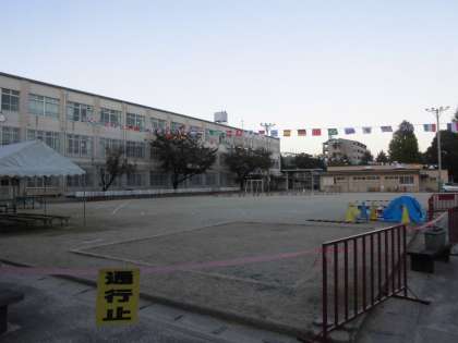 今日の放課後,子どもたちが完全下校した後に,教職員で運動会の準備を行いました。