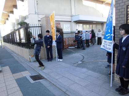 そんな寒さに負けず,今日も中学1年生が「あいさつ運動」を行います。