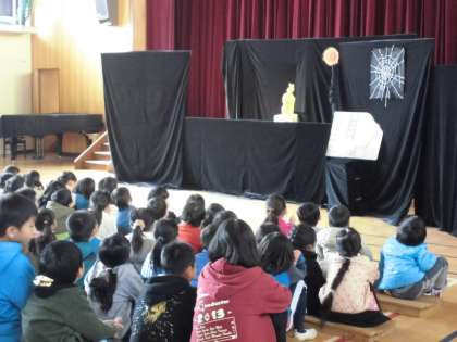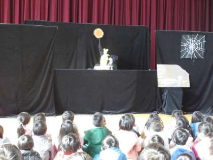 読書週間の取組として,1・2年生とさくら学級は,劇団三輪車さんによる人形劇の公演を鑑賞しました。