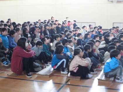 体育館から教室に戻る子どもたちは,大満足の表情を見せていました。