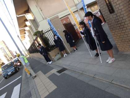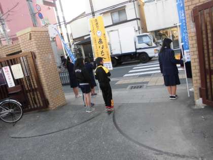 そんな寒さにも負けず,ここまで2週間余り,七条中学校の1年生が「あいさつ運動」を行ってきましたが,今日がその最終日です。